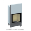 De nombreuses options sont disponibles sur ce modèle: habillages intérieurs, double vitrage, vitres sérigraphiées, suppression des montants en partie basse, cadre de finition en acier, laiton,chromé ou inox brossé…Point très intéressant sur ce modèle, la sortie de fumée est en diamètre 180 et permet des installations sur des conduits étroits.Il est possible sur ce modèle de rajouter des anneaux d’accumulation de chaleur pour bénéficier plus longtemps de l’énergie produite. La grande hauteur de ce foyer permet de mettre en position verticale des grandes buches. Effet spectaculaire garanti.