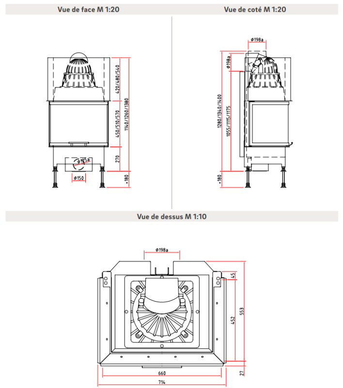 De nombreuses options sont disponibles sur ce modèle: habillages intérieurs, double vitrage, vitres sérigraphiées, suppression des montants en partie basse, cadre de finition en acier, laiton chromé ou inox brossé…Il est possible sur ce modèle de rajouter des anneaux d’accumulation de chaleur pour bénéficier plus longtemps de l’énergie produite. Point important: ce modèle a un diamètre de buse de 200mm.