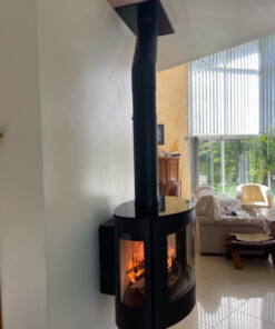 Elyps Wall est un poêle à bois de Denia, conçu en forme d’ellipse et proposé en version suspendue. Doté d’un large foyer à trois faces vitrées, il permet d’accueillir des bûches jusqu’à 60 cm, offrant une vue sur les flammes où que vous soyez dans la pièce. Conçu pour être suspendu contre un mur, il est composé d’une structure en acier noir de 5 cm d’épaisseur, d’une grille en fonte et d’un revêtement en vermiculite. Grâce à ses puissantes performances, ce poêle peut chauffer un volume de 200 m³.