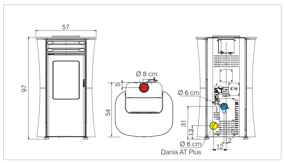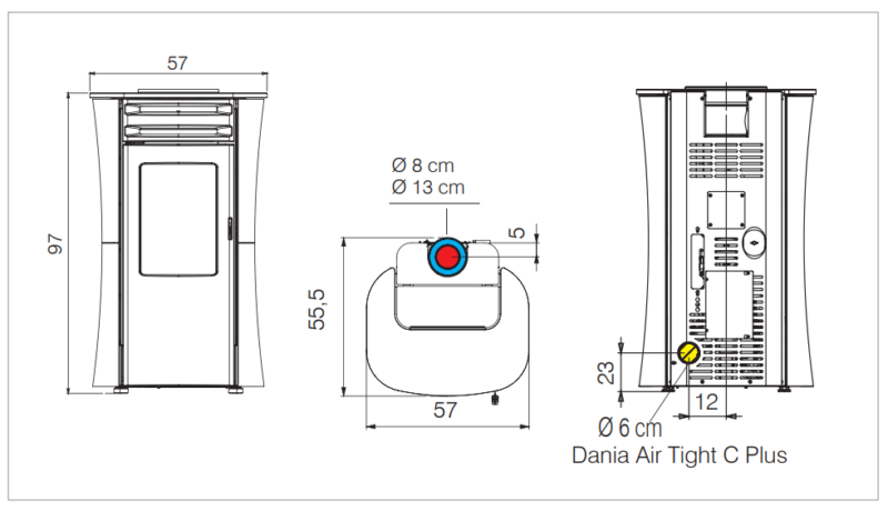 Forme unique pour le Dania, étanche, il est doté d’une sortie sur le dessus, en simple paroi ou en co-axial vous permettant de prendre l’air comburant par le conduit de fumée. Ce poêle est doté de série du système AIRKARE. Cet appareil existe également en version canalisable
