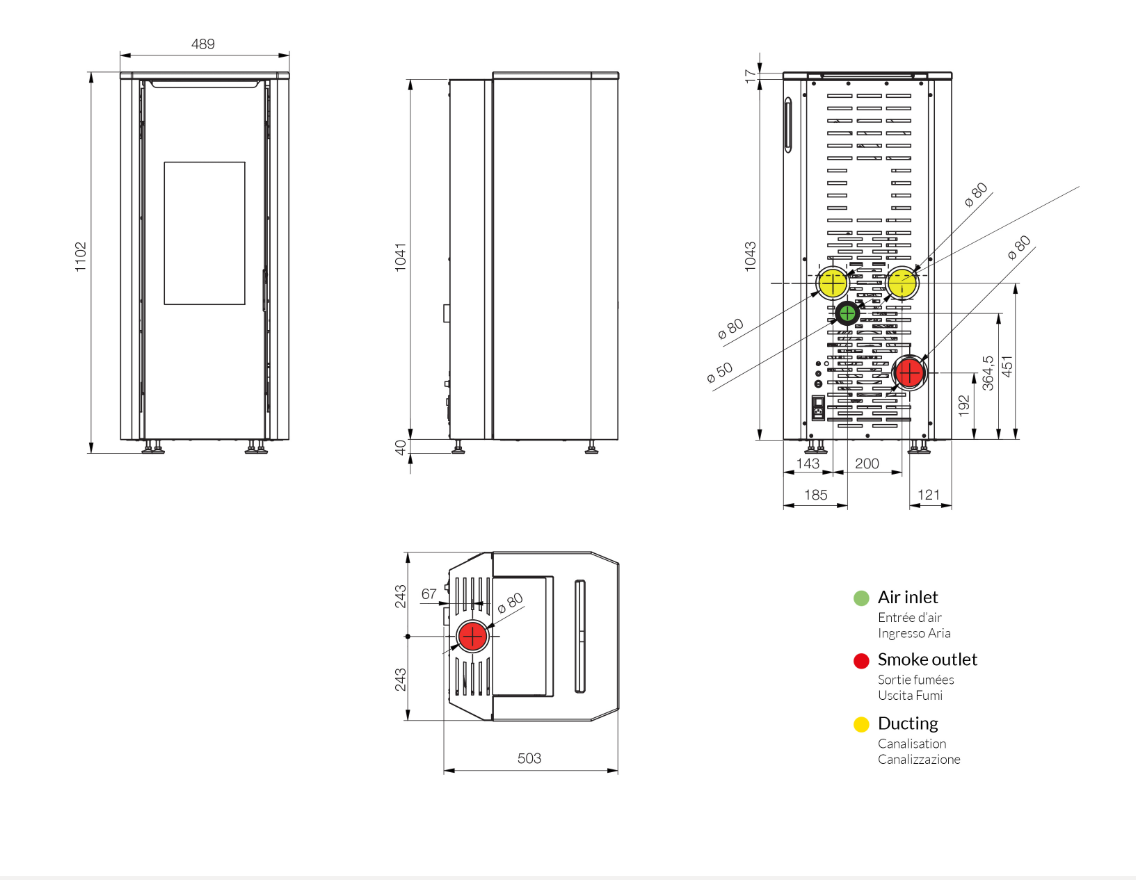 Distances de sécurité pour matériaux combustibles (arrière-côté-plafond-avant) en cm